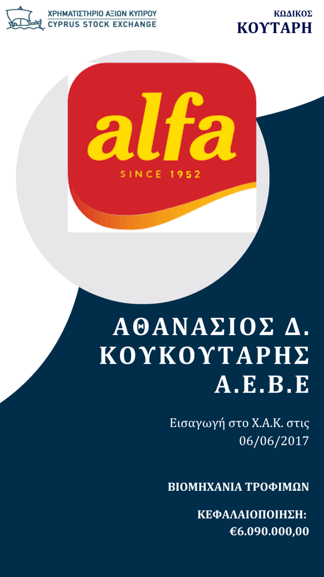 Η συνεργασία με την Εταιρεία μας ξεκινά το 2017 με την εισαγωγή των μετοχών της στη Ν.Ε.Α. του Χ.Α.Κ. το καλοκαίρι του ίδιου έτους και συνεχίζεται μέχρι και σήμερα στο ρόλο του Συμβούλου (Nominated Advisor) έναντι του Χρηματιστηρίου Αξιών Κύπρου.