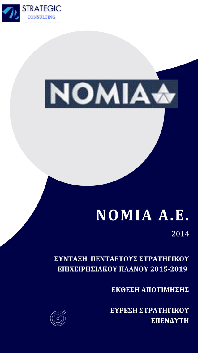 Η Εταιρεία μας, ανέλαβε τη σύνταξη του πενταετούς Στρατηγικού Επιχειρησιακού Πλάνου της ΝΟΜΙΑ, τον καθορισμό του projected financial model, την αποτίμησή της και τη συνδρομή στην εύρεση στρατηγικού επενδυτή.