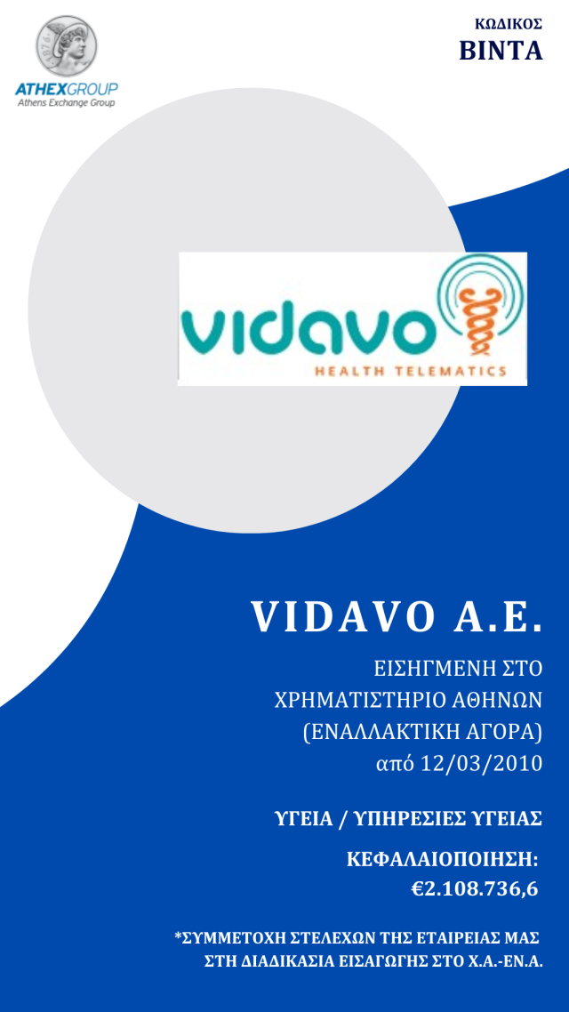 Η Vidavo A.E. είναι η μοναδική εταιρεία στην Ελλάδα στην ανάπτυξη ολοκληρωμένων τεχνολογικών λύσεων τηλεματικής της υγείας.